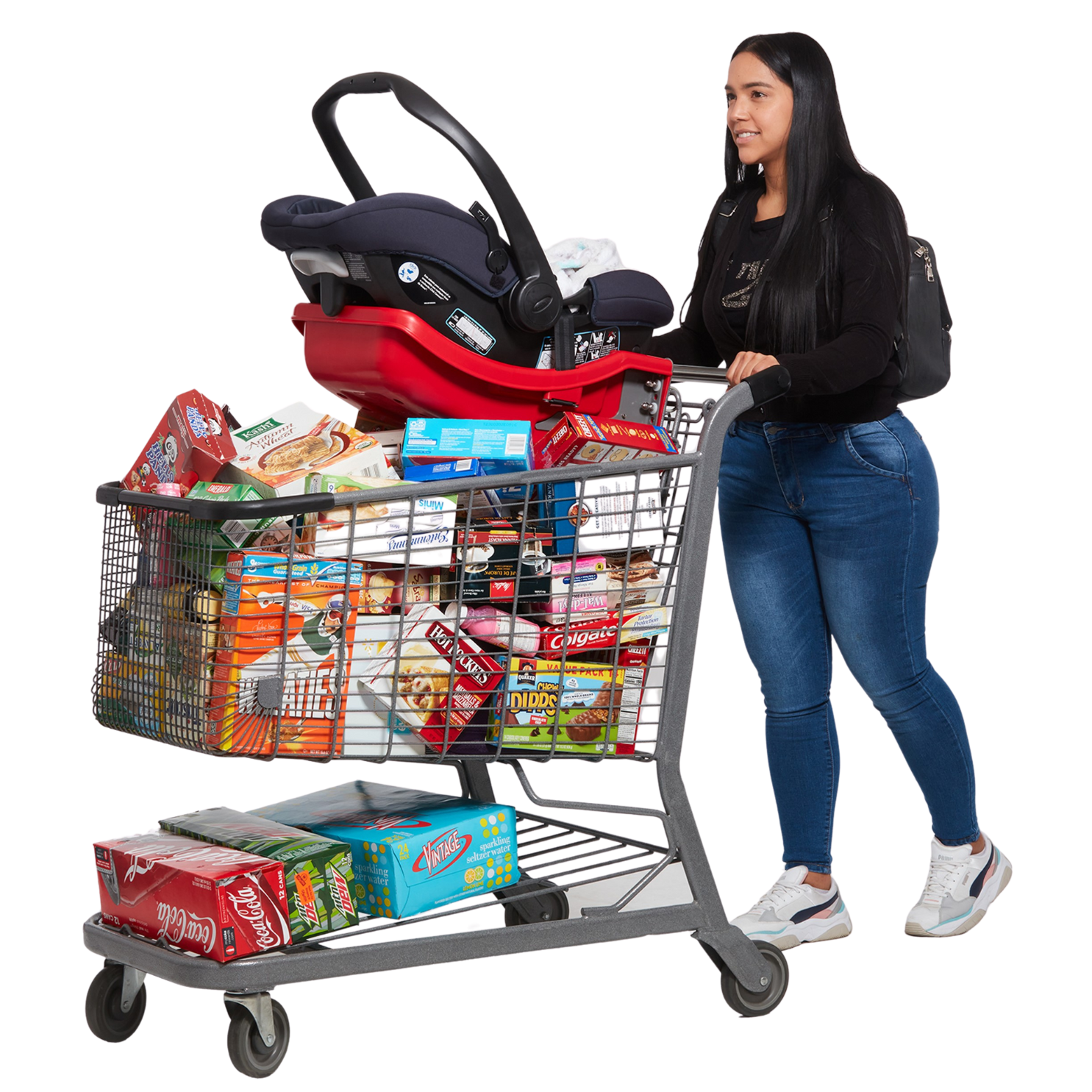 The Safe-Dock™ is a cart seat docking station for shopping carts that allows parents to use the entire basket for purchases. It securely holds infant carriers to help parents transition seamlessly from car to cart, ensuring a safer and easier shopping experience for them and increased revenue for you.